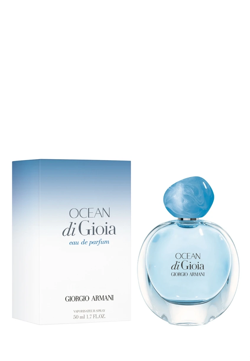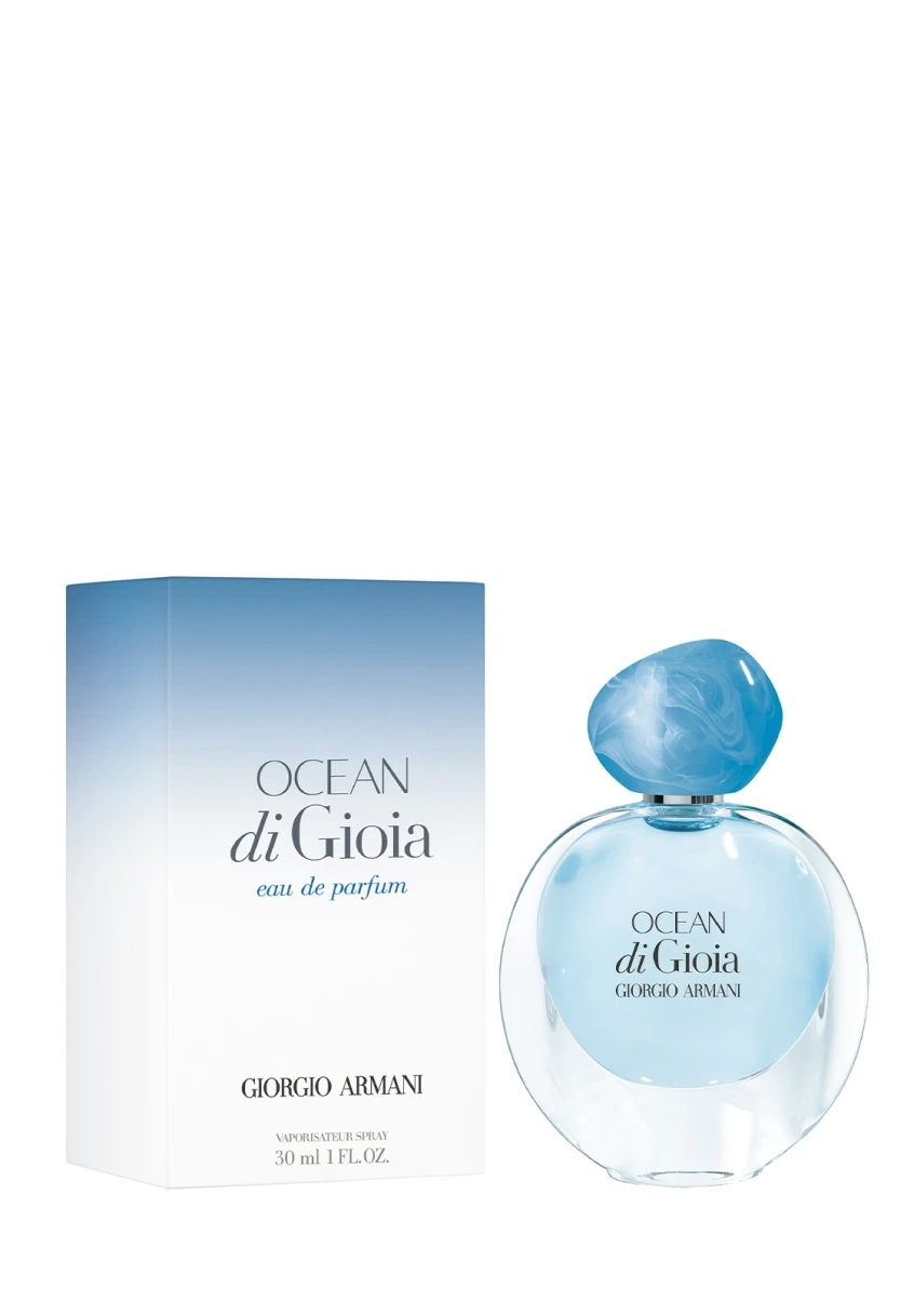 Ocean di Gioia, le nouveau parfum féminin de Giorgio Armani, est un hommage à l’immensité et aux multiples facettes de l’océan. En note de tête, le duo juteux et croustillant de poires et d’agrume procure une première touche d’énergie. Au cœur, un bouquet floral de jasmin d’eau, de lys et de rose crée des sensations vivifiantes d’eau salée. En fond, des notes boisées addictives de bois de santal et de muscs ajoutent de la structure pour un sillage confortable. Le flacon, pur et organique, avec ses courbes inspirées des formes de la nature, est une incarnation moderne de la vision de la féminité de Giorgio Armani : élégante et authentique. Ocean di Gioia a été créé pour une femme vivante, naturelle et éblouissante, qui est en harmonie avec elle-même.