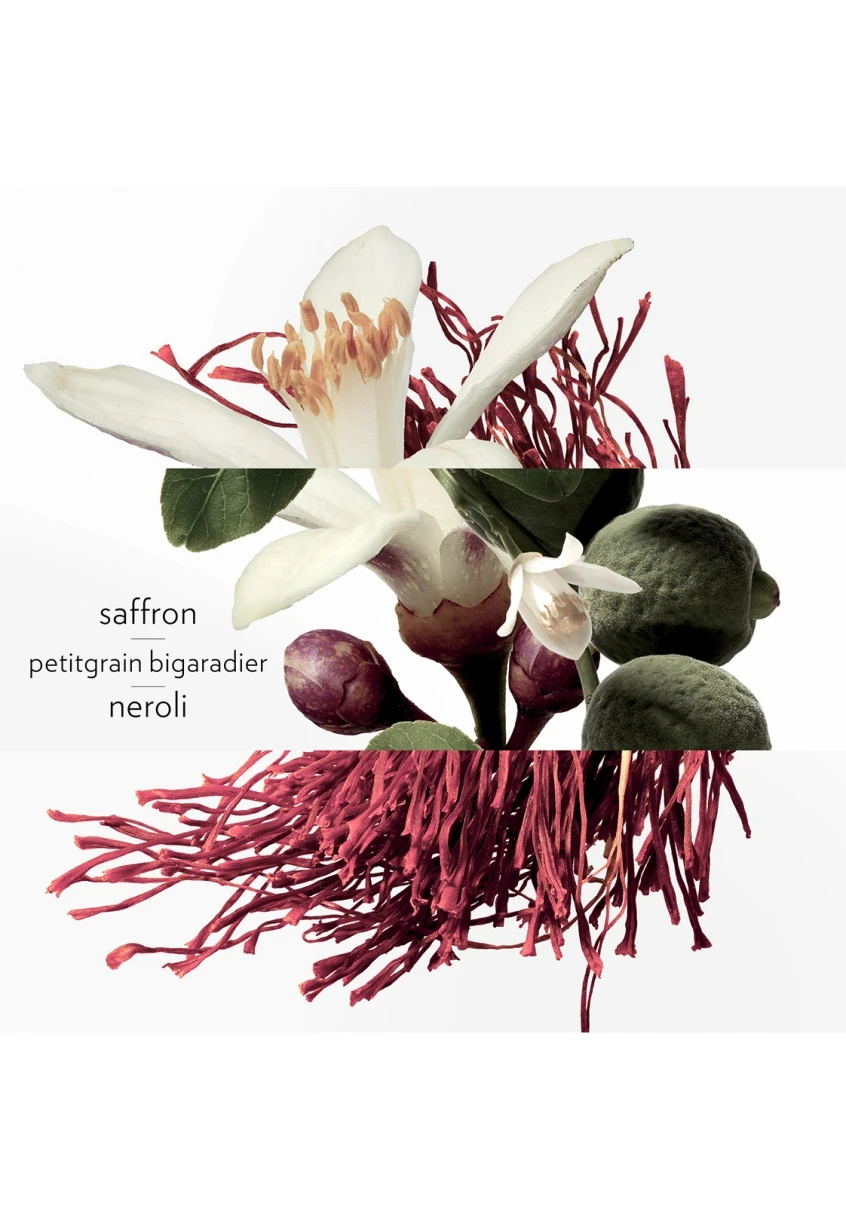 La fraîcheur vive et abondante du néroli relevée de safran.