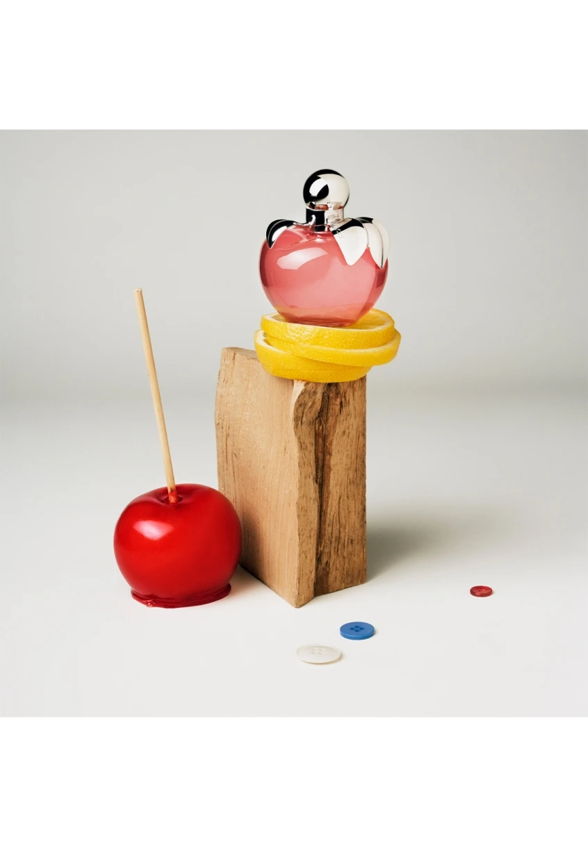 Le flacon emblématique de Nina, en forme de pomme, est reconnaissable à son verre rose brillant et à son bouchon argenté lumineux. Dans le cadre de notre démarche éco-responsable, le format 80 ml est rechargeable. Il est en outre composé à 20 % de verre recyclé et est totalement recyclable. Enfin, il est facile à démonter pour simplifier le recyclage.