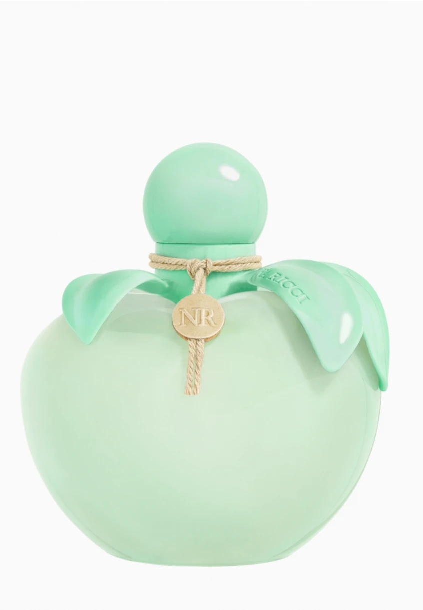 Inspiré par une nature fraîche et verdoyante, le flacon pomme emblématique de Nina s’habille d’une teinte vert opaline, rappelant une pomme cueillie à la rosée du matin. Pour un fini naturel, un cordon brun scellé par une pastille au monogramme NR est noué autour de son col.