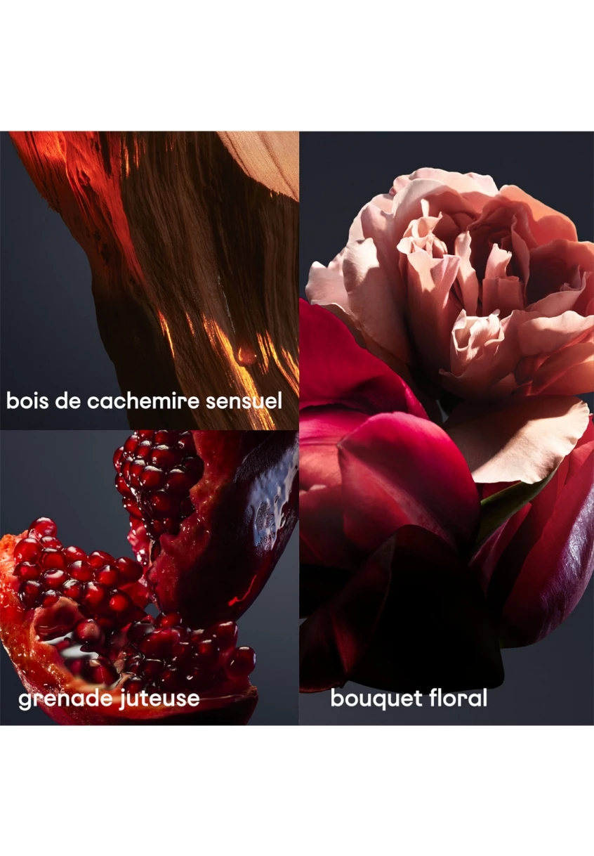 Caractérisée par l’alliance flamboyante du bois de cachemire magnétique et des notes gourmandes de la grenade juteuse, cette eau de parfum sensuelle pour femme est rehaussée d’un bouquet floral irrésistible.